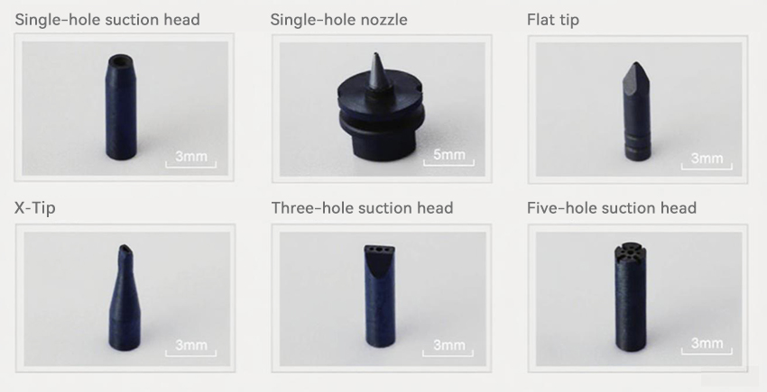 The unique internal structure design makes the airflow distribution of the nozzle more uniform and reasonable. In the adsorption process, it can quickly generate stable adsorption force, firmly grasp the components; when releasing, it can quickly eliminate the adsorption force to ensure that the components are smoothly detached, which greatly improves the production efficiency and smoothness of operation.