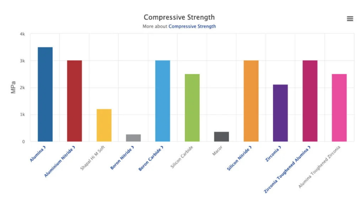 Technical ceramics have very high strength, however, this is only when compressed. For example, many technical ceramics can withstand extremely high loads ranging from 1000 to 4000 MPa. Titanium on the other hand, which is regarded as a very strong metal, only has 1000 MPa of compressional strength.