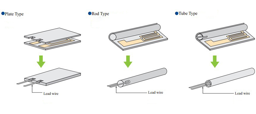 The heating element of the ceramic heater is built into a substrate of alumina or silicon nitride material, then laminated and sintered into one piece — providing insulation and protection from the outside environment.