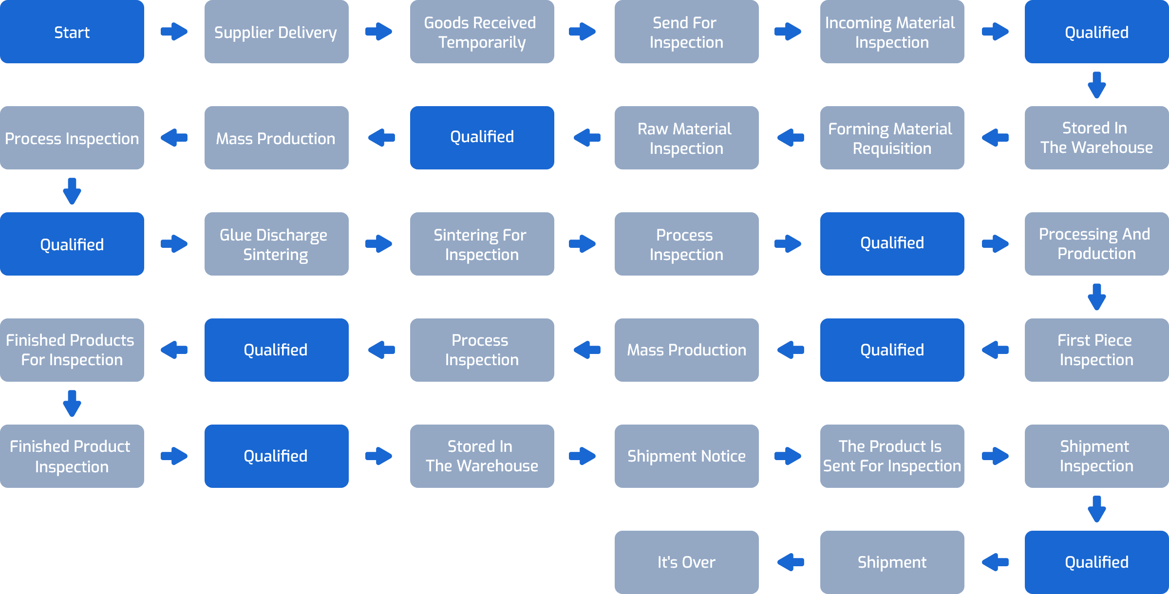 - 3. Process inspection: Responsible for the process inspection and control work in each production workshop of the company, including the first inspection of each process, patrol inspection, testing, and auditing.